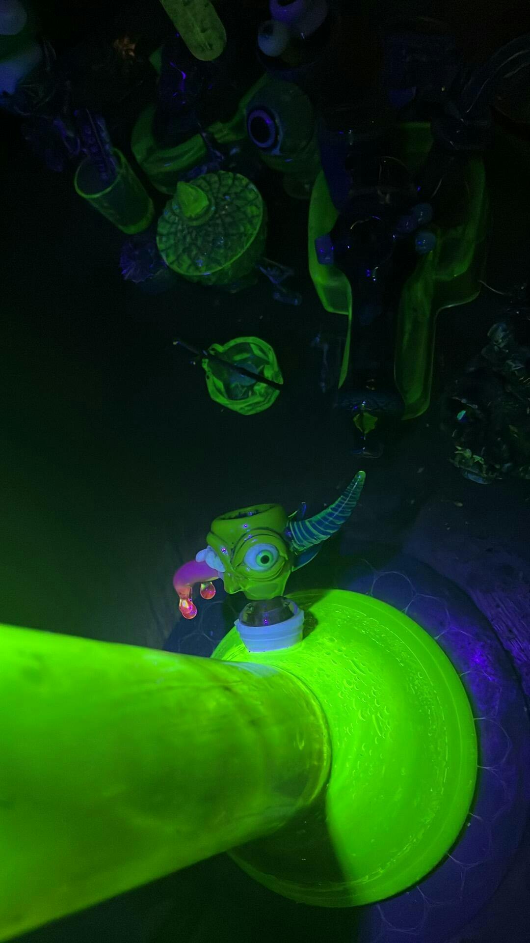 14mm citrine yellow, tongue slide with largr horn, glow in the dark eye and teeth.