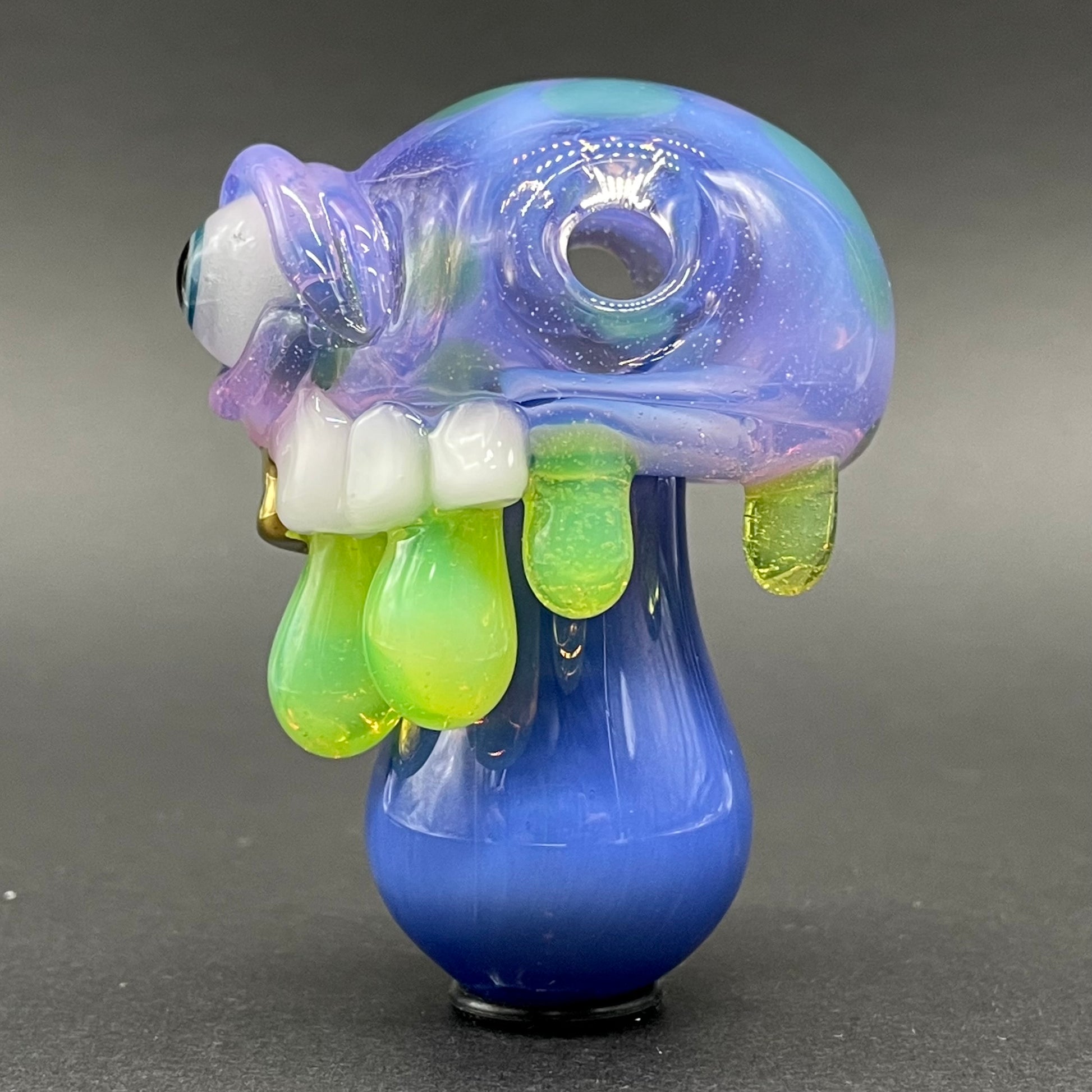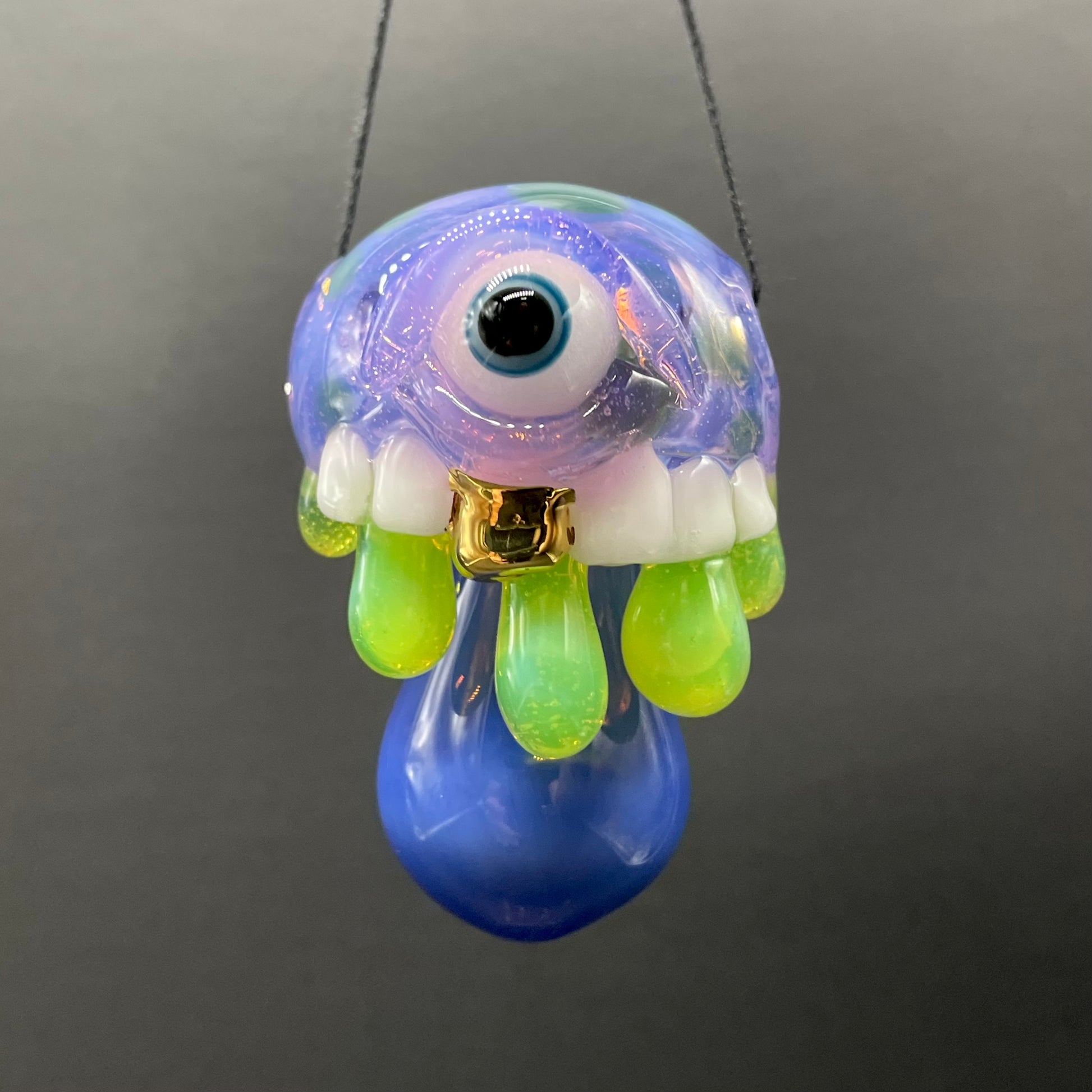Ah, sounds like a wild time last night! I found this wild mushroom pendant with a gold enamel tooth and a glow-in-the-dark eye? That's a serious mix of eerie and cool!