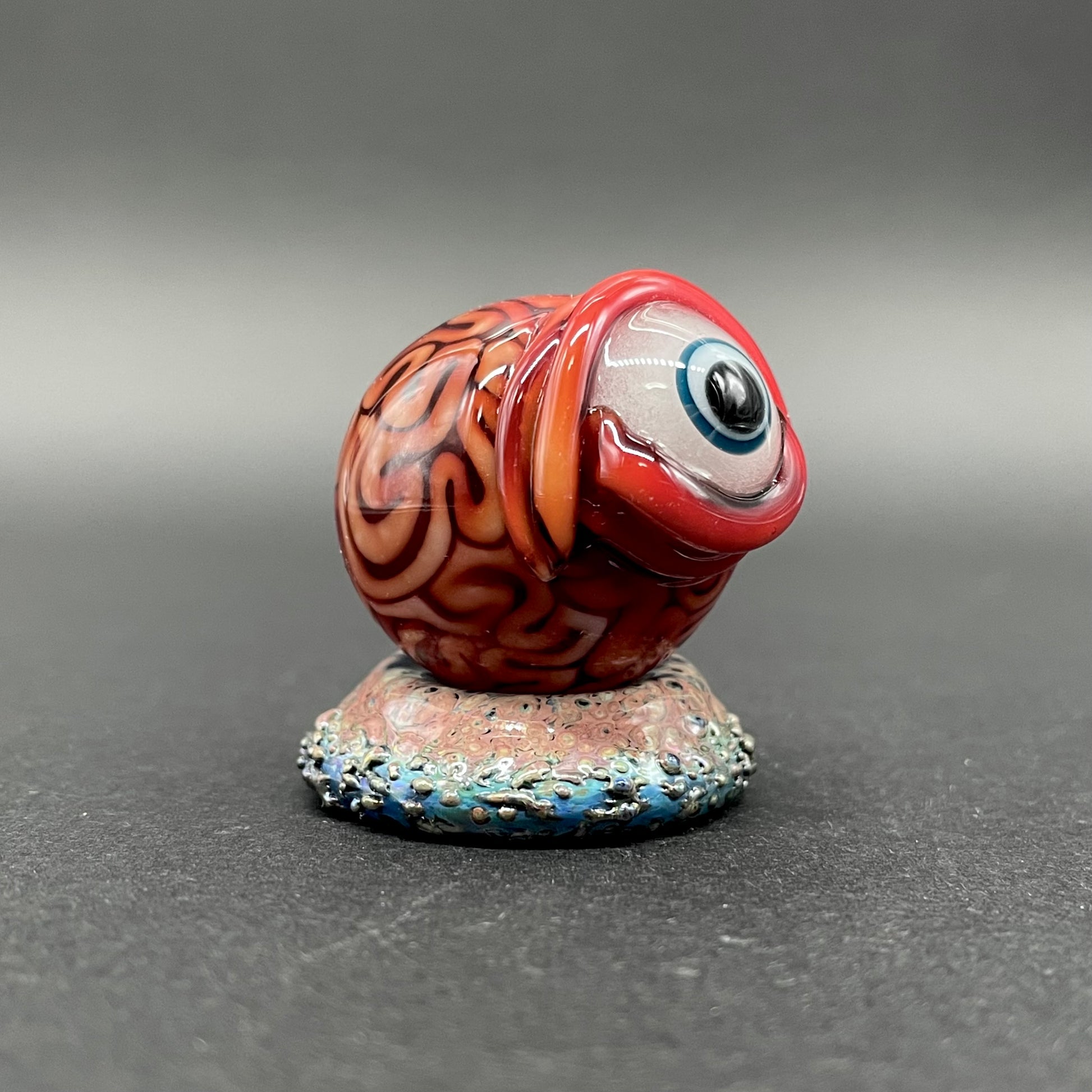 Are you a glass marble collector? Are you into the strange and unusual? Here is a little something for you with this cyclops brain marble featuring a glow in the dark eye and marble stand.