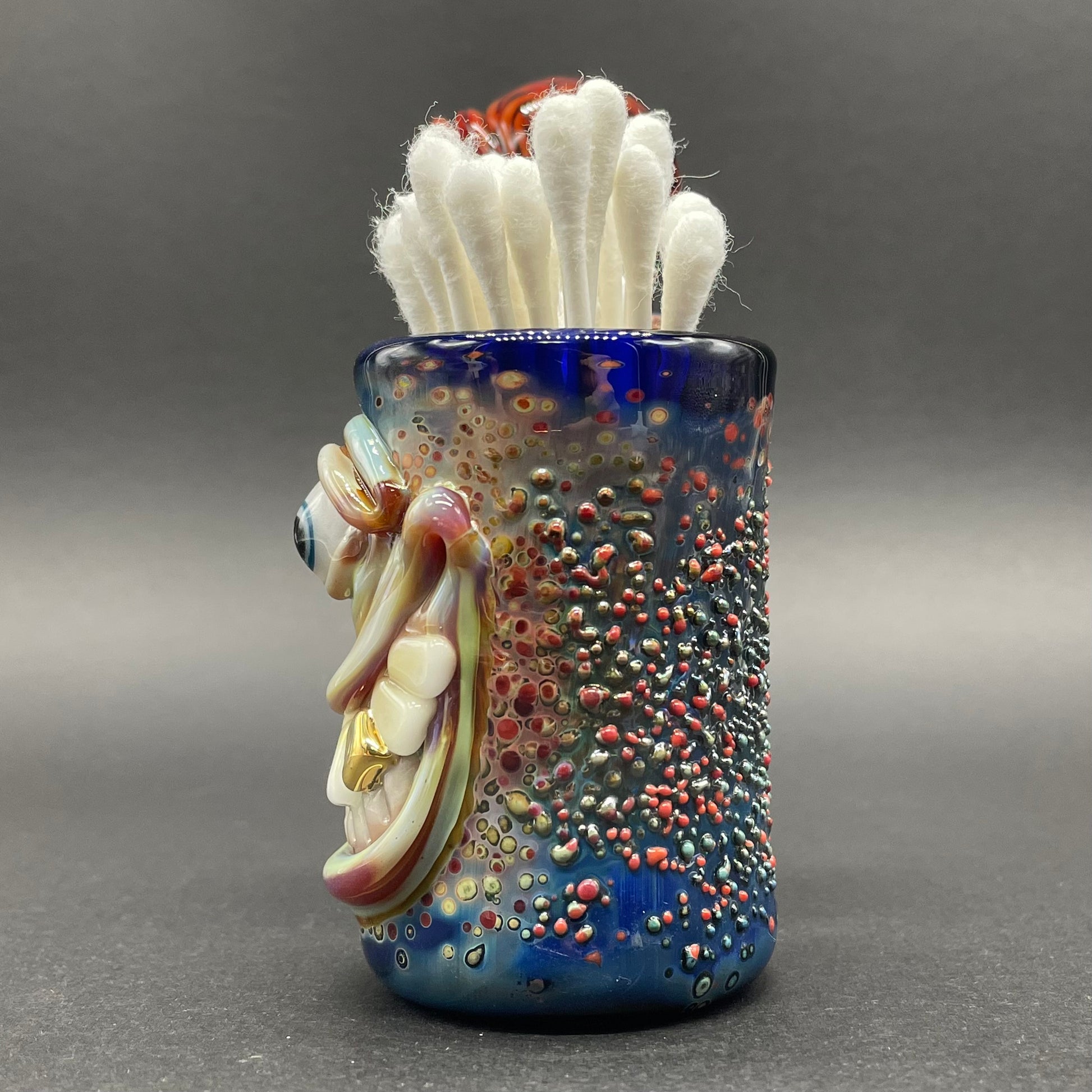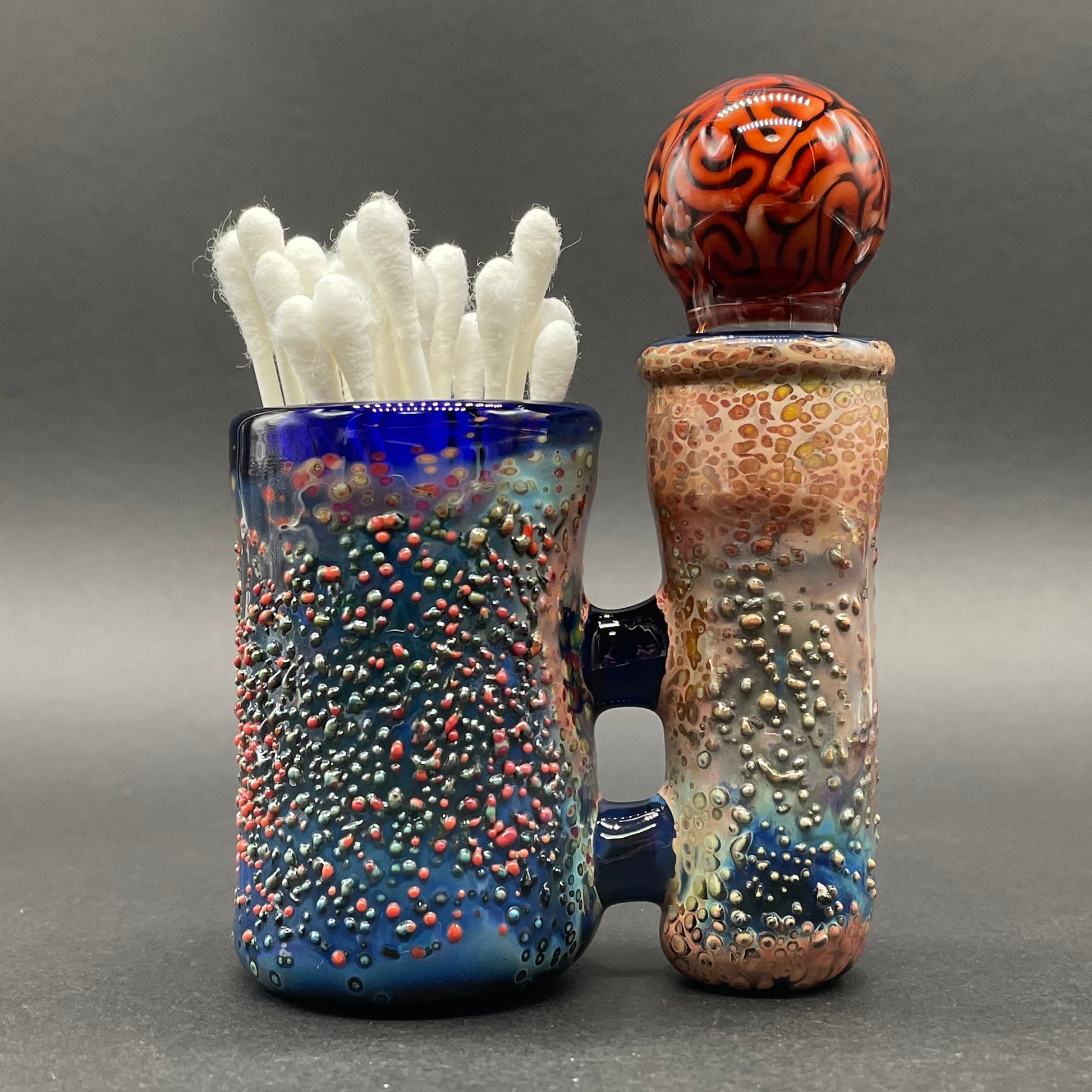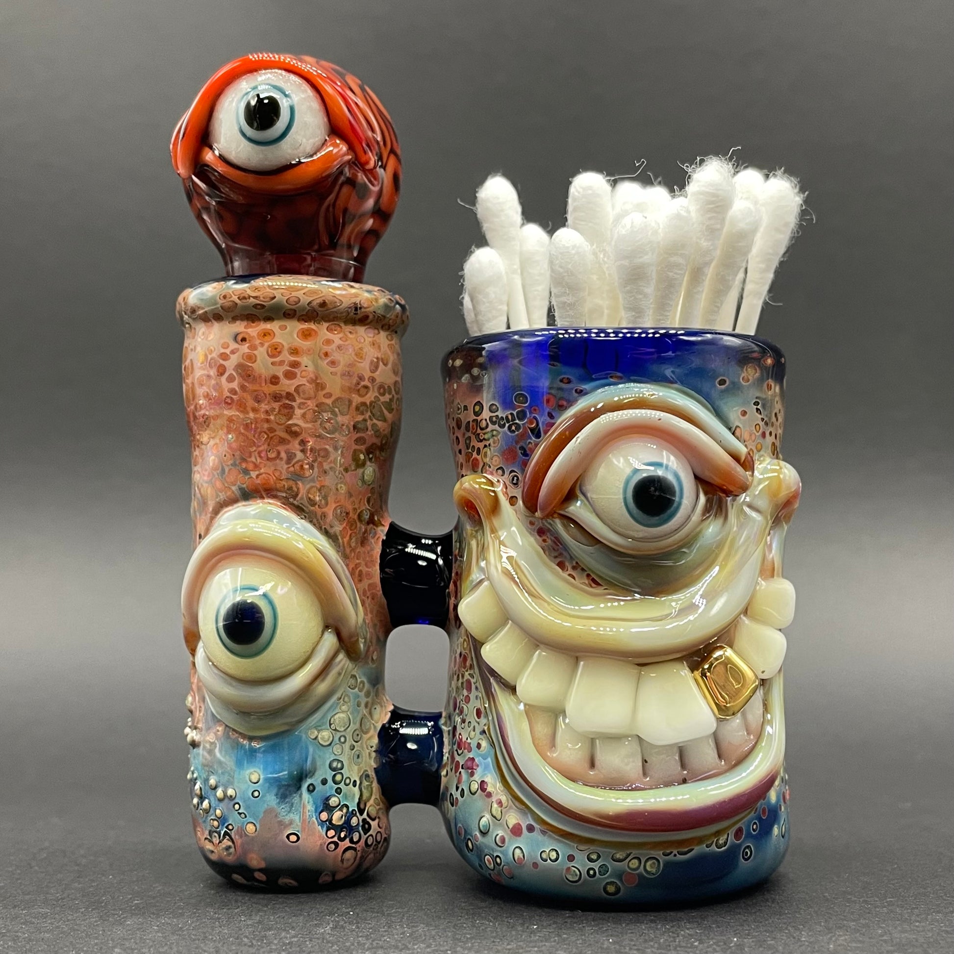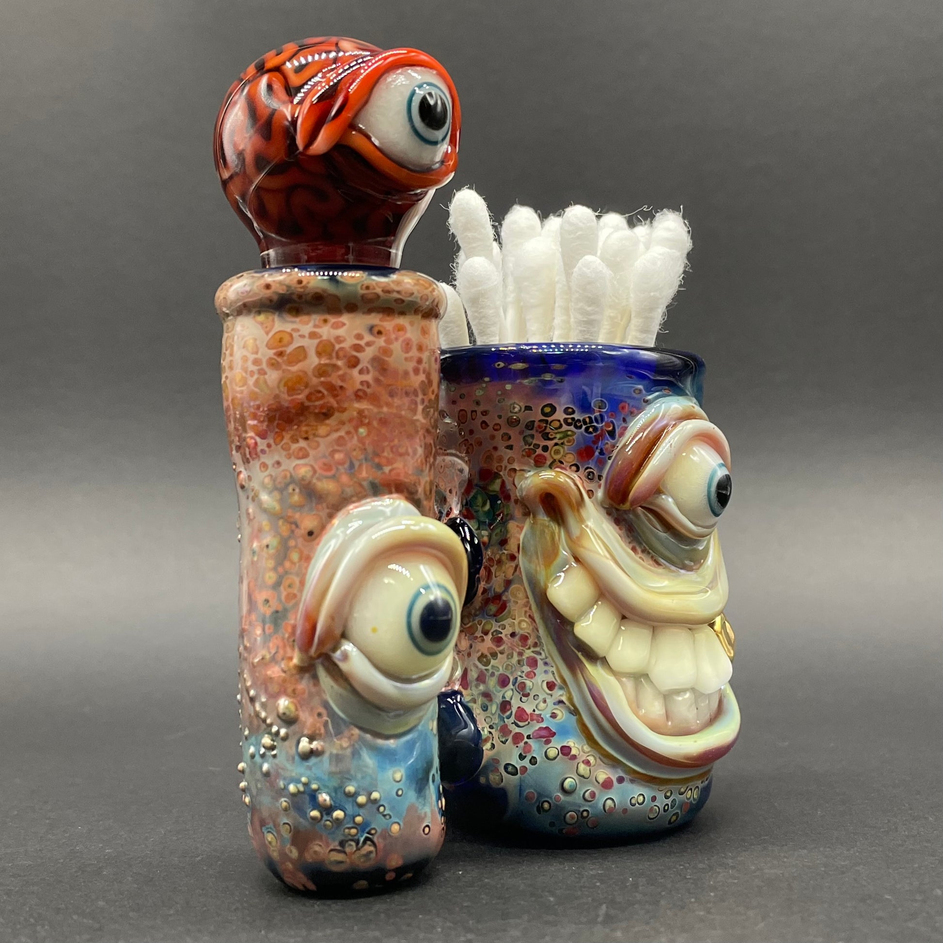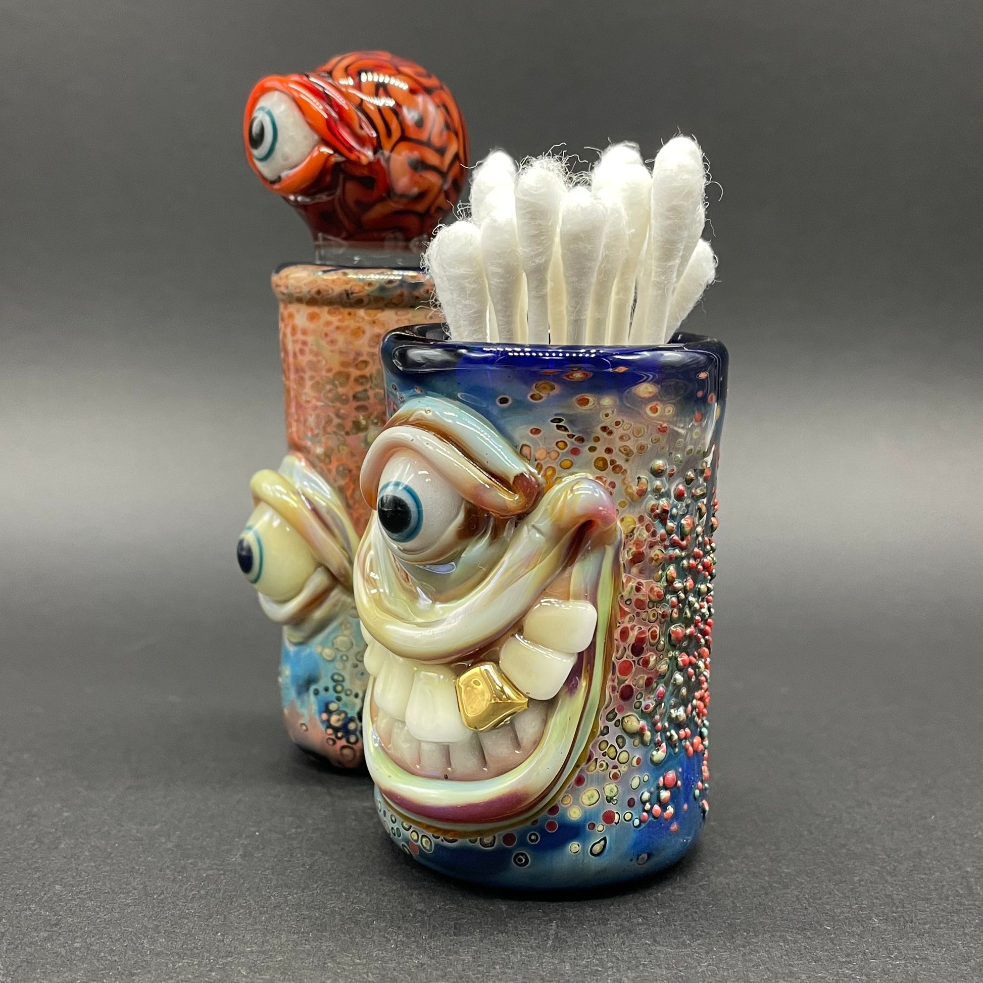 This creepy cleaning station will hold your Q-tips and whatever cleaning product you like safely with its watertight ground glass stopper brain cork.