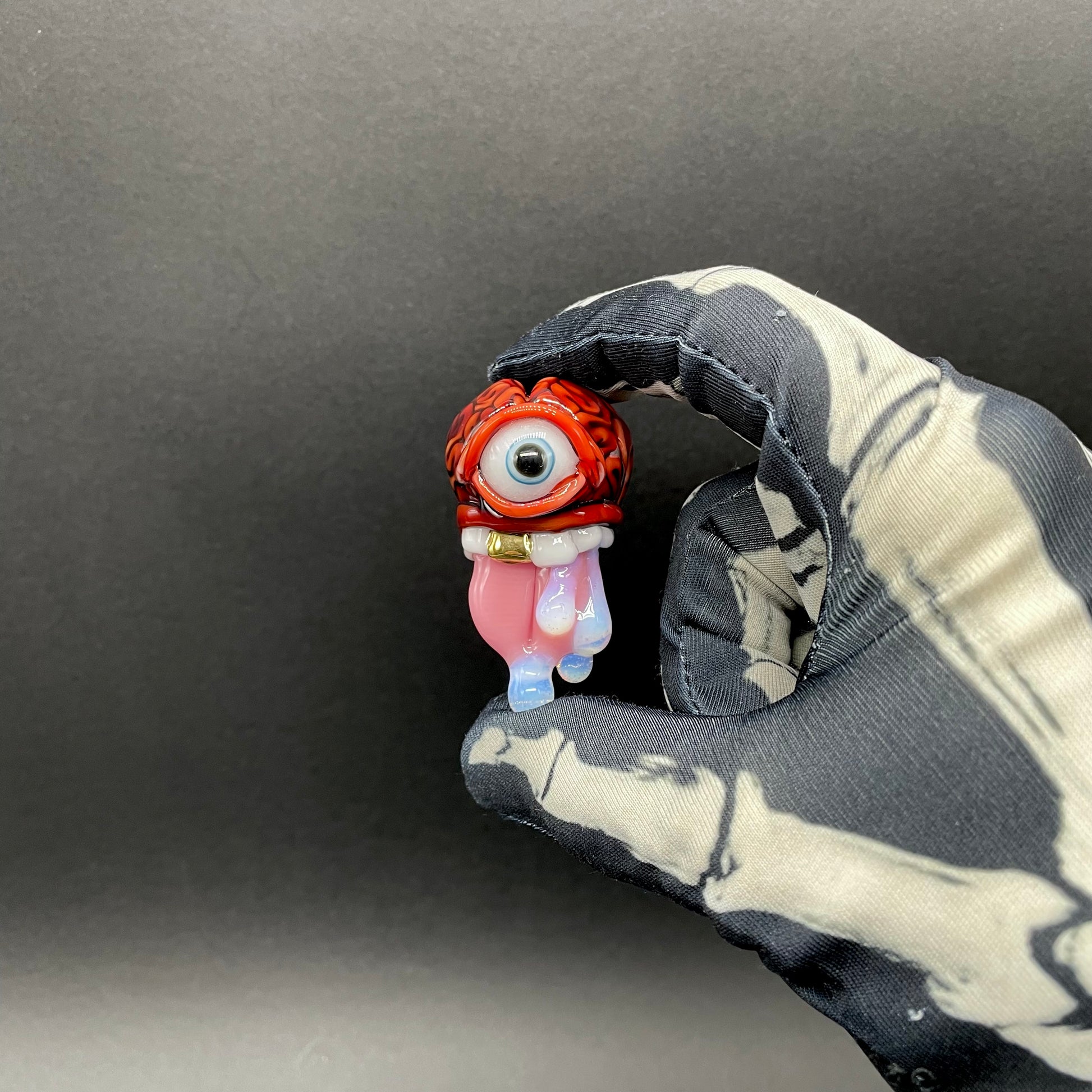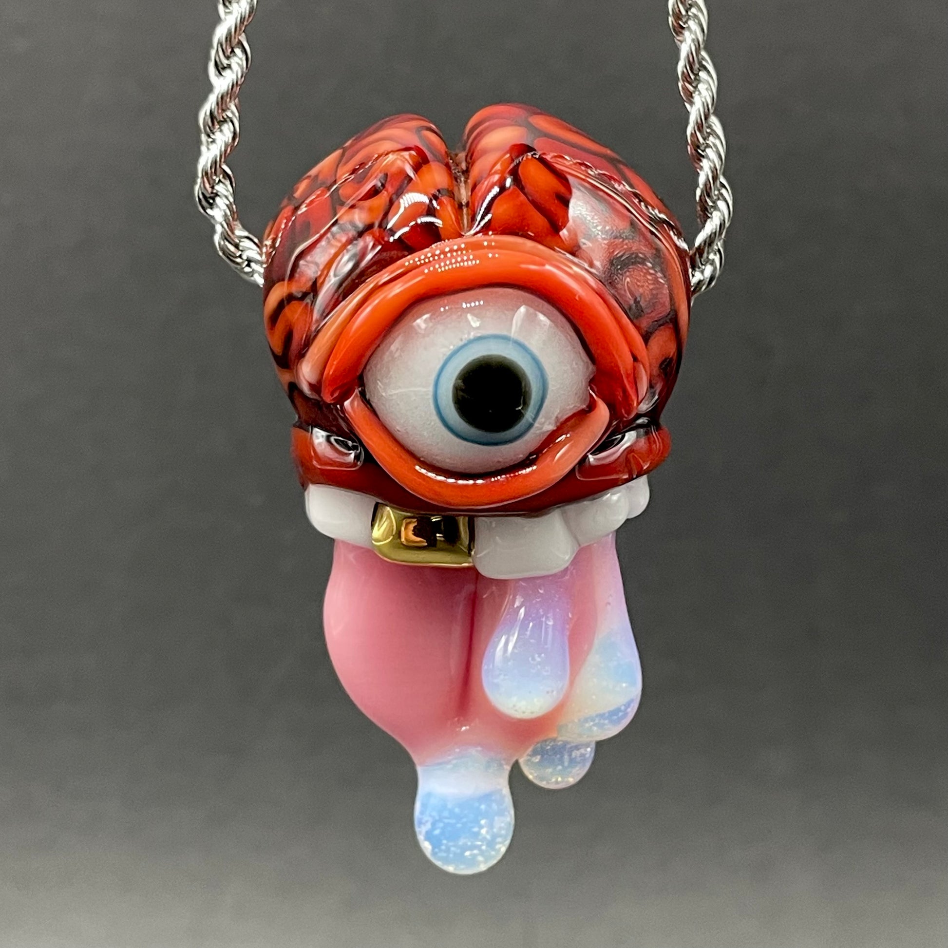This otherworldly glass pendant features a glowing cyclops eye, a gleaming gold tooth, and a dripping tongue. Creepy, weird, and totally out of this world—a perfect piece for lovers of the strange and unusual.