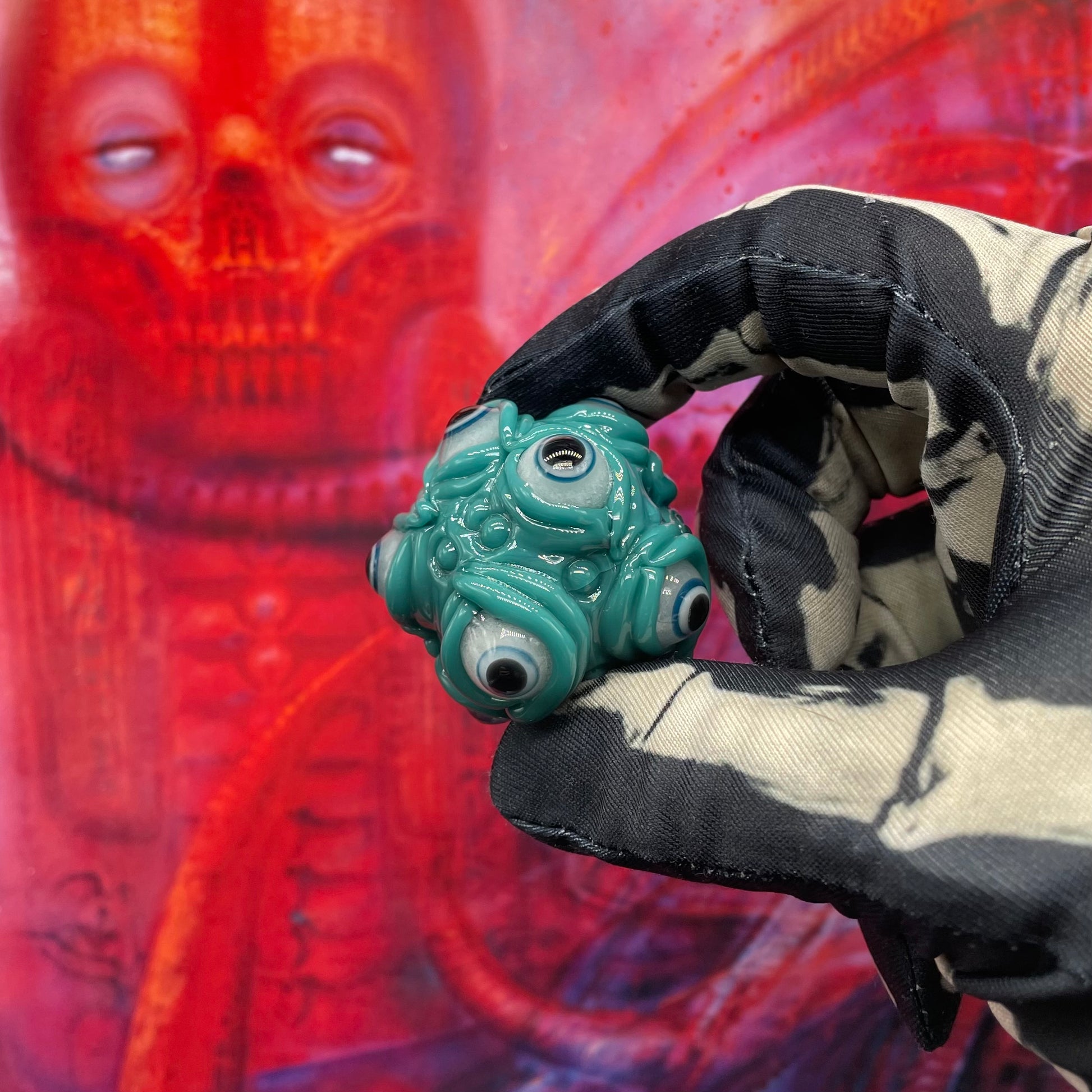 This Agua azule glass pendant features multiple glow in the dark eyes. stare into the void until it blinks back.