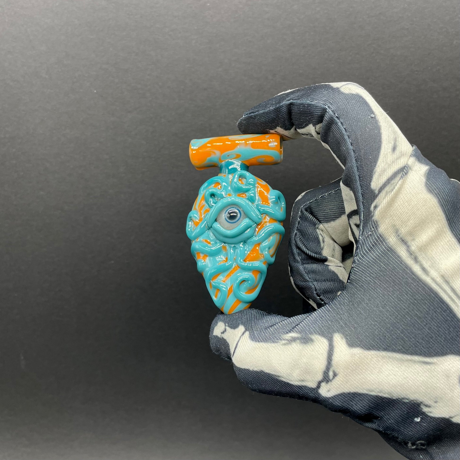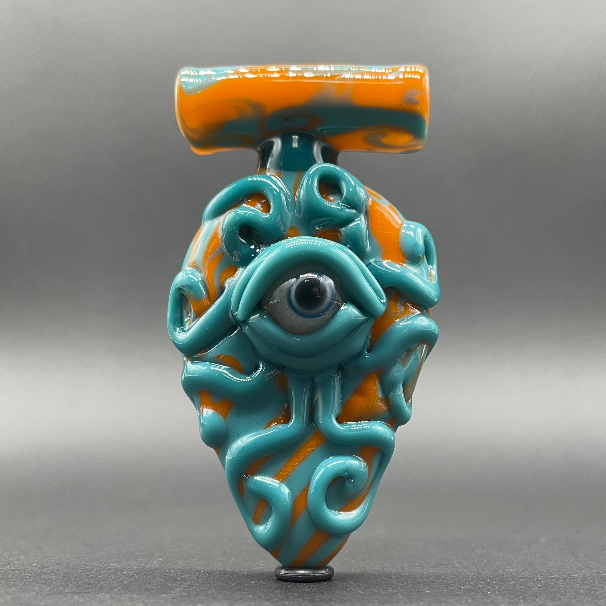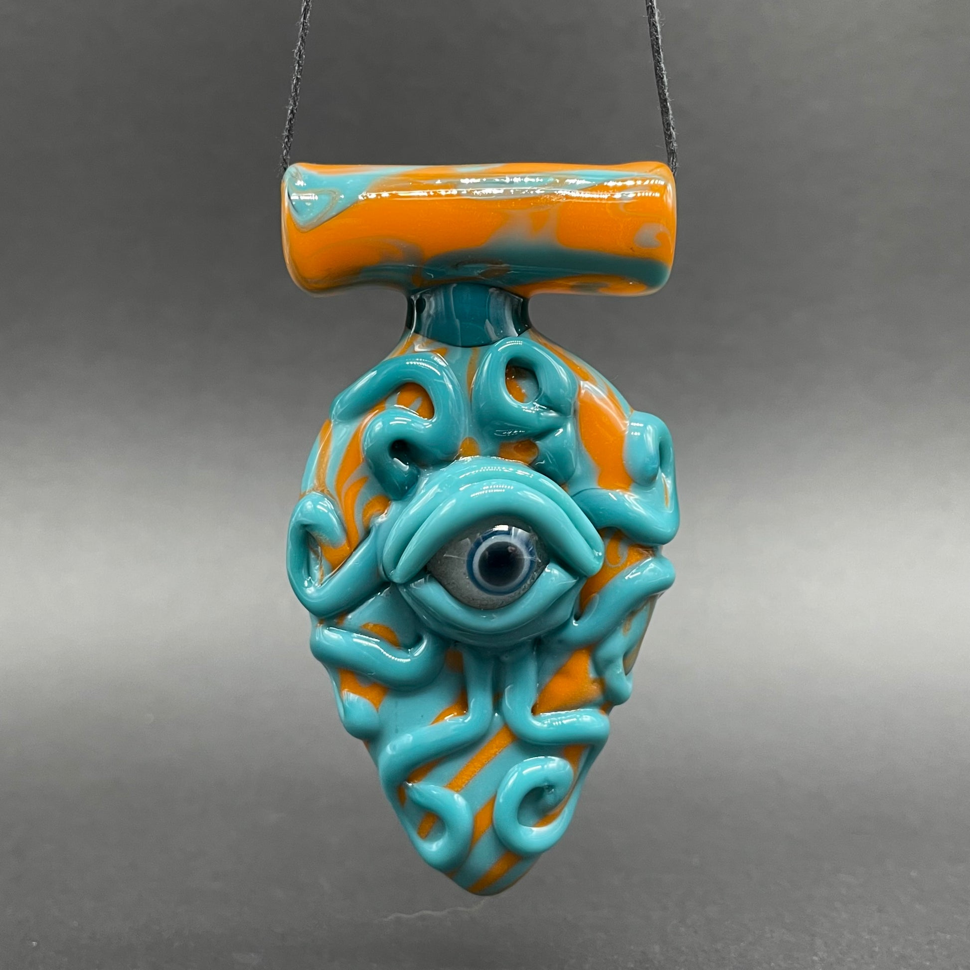 A protection amulet for warding off the elder gods. This powerful glass pendant features a glow in the dark eye surrounded by writhing tentacles and a large diameter bail.