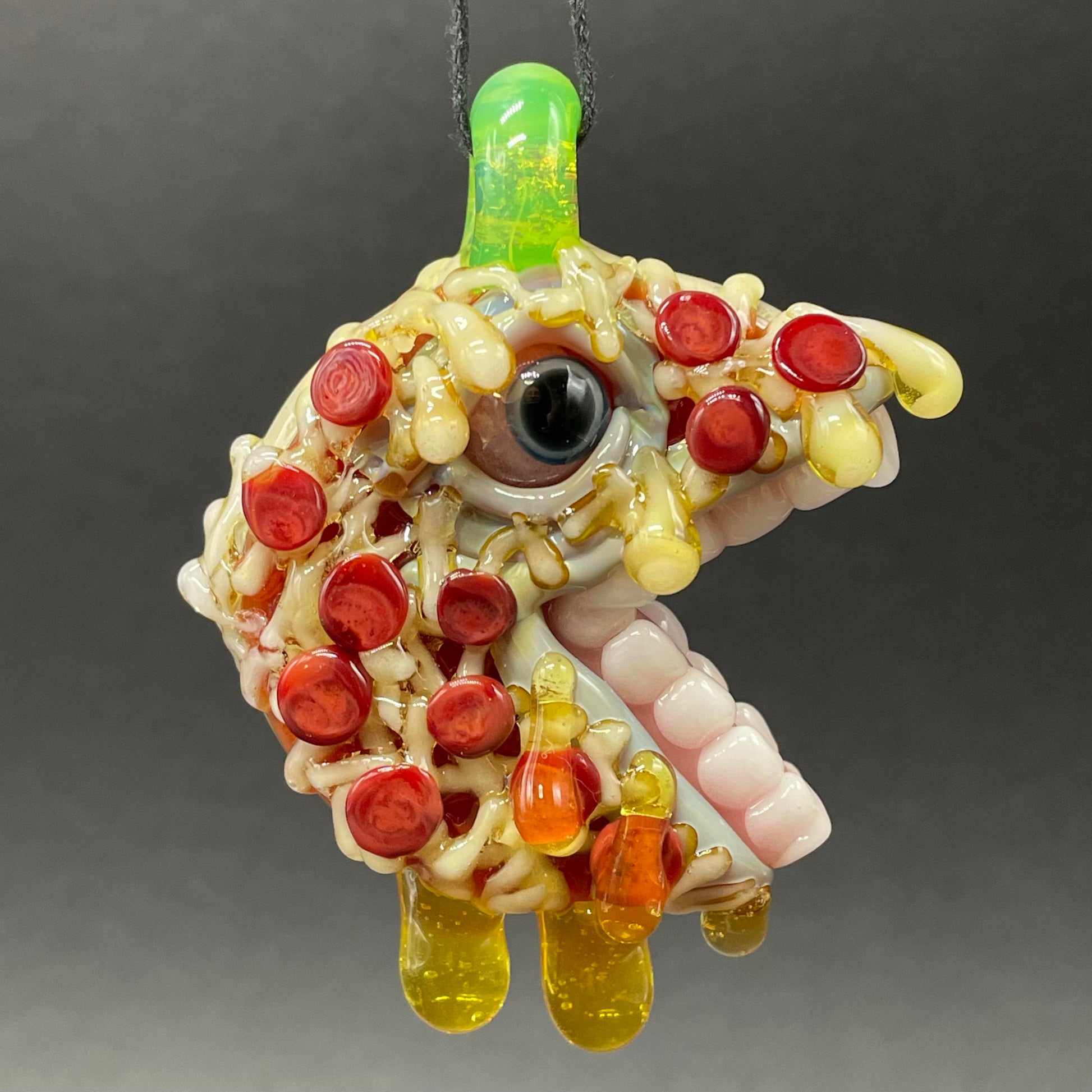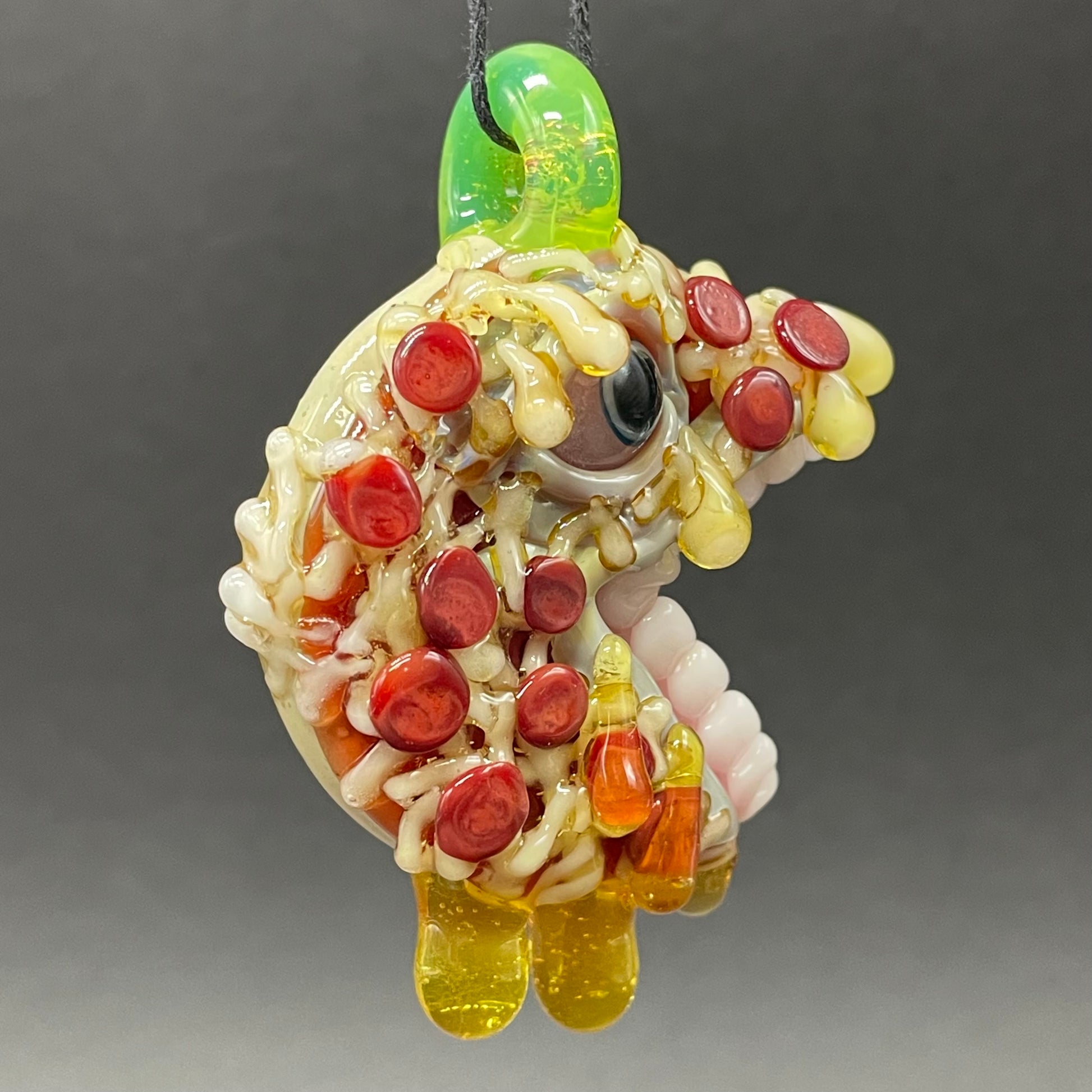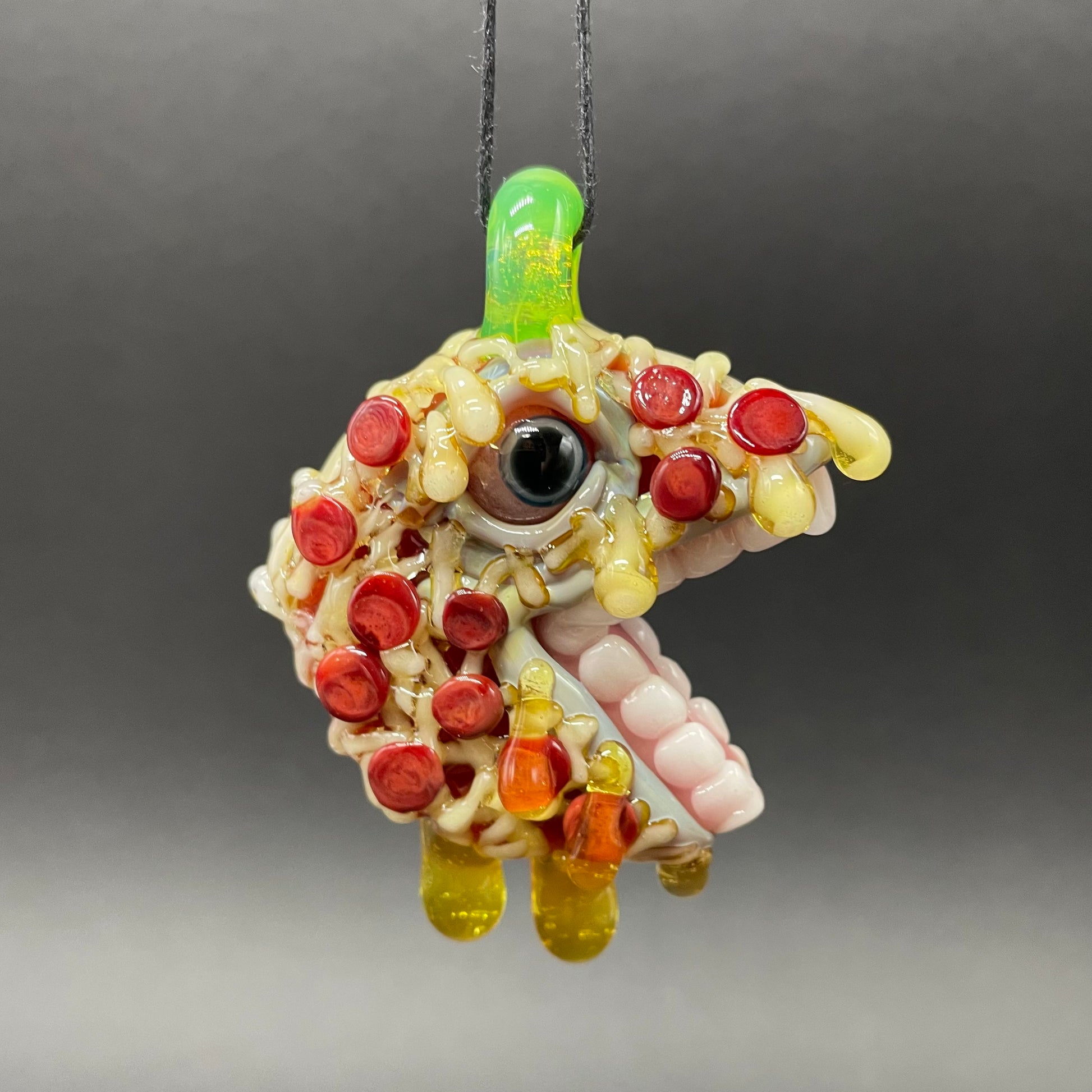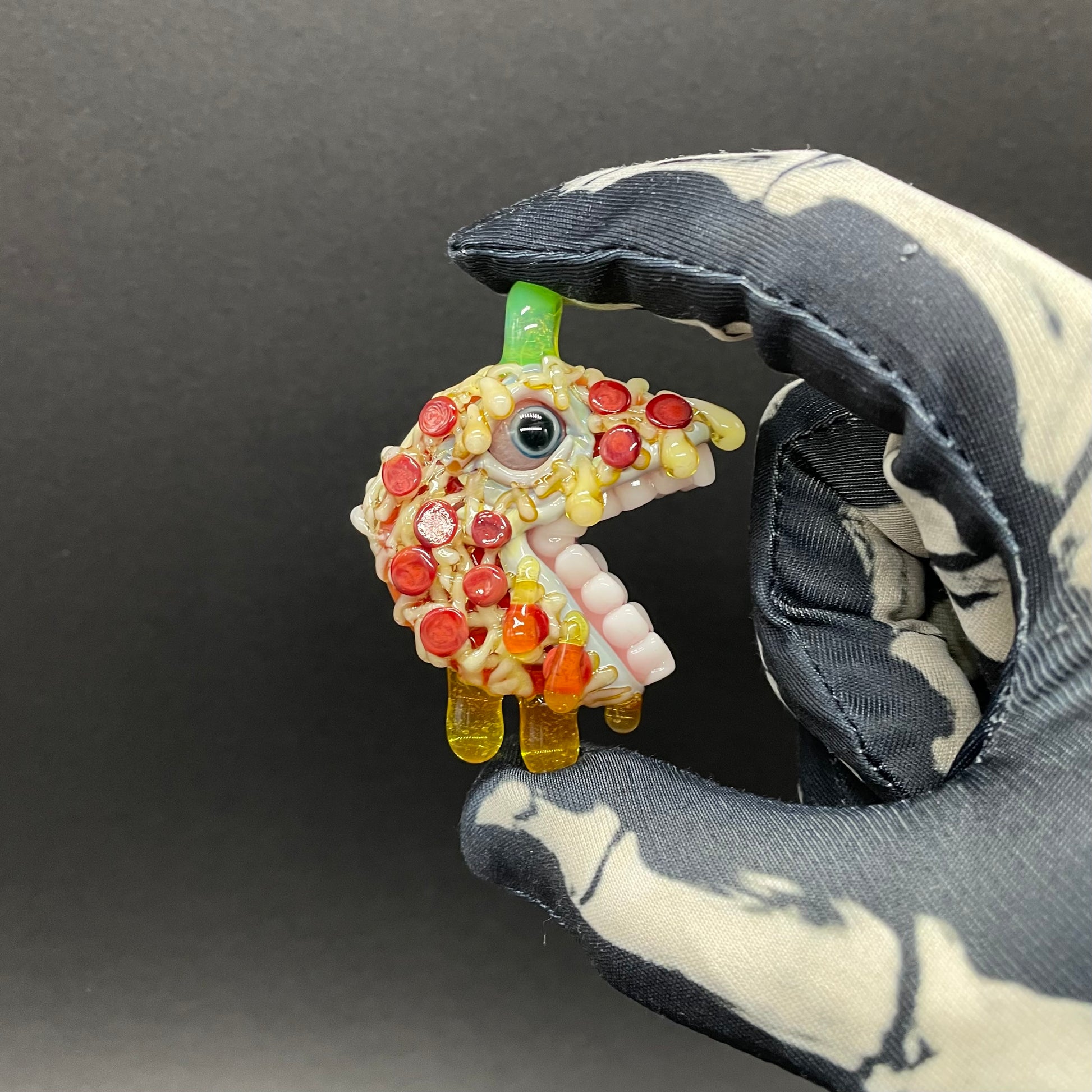 This detailed glass pendant features a glow in the dark eye dripping cheese and dangerous teeth. Imagine all the compliments you will get with such a unique design.