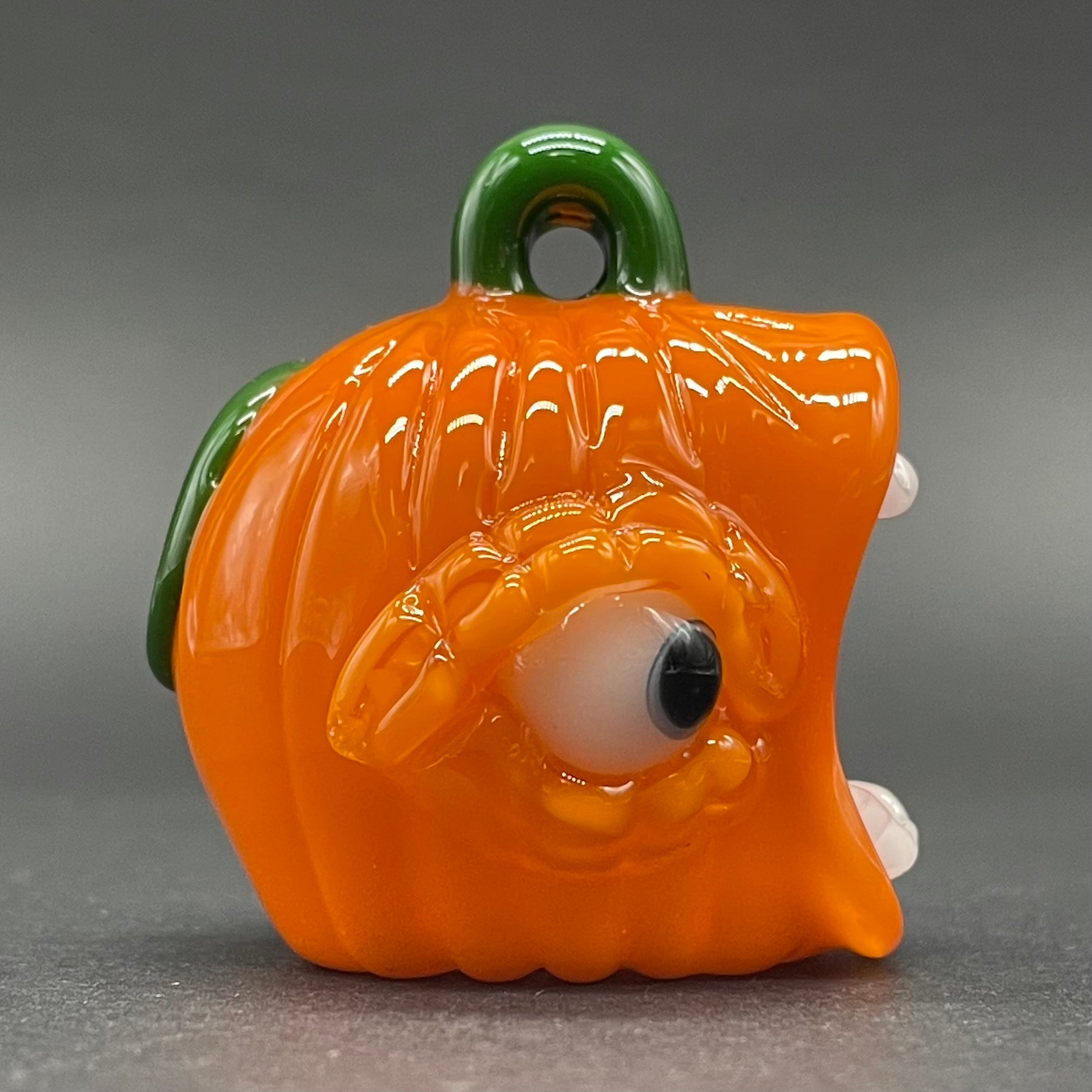 It’s spooky season! This highly detailed, hand-blown glass pumpkin pendant is ready to scream its way into your collection. Featuring a wide open mouth frozen mid-shriek and two eerie glow-in-the-dark eyes, this one-of-a-kind piece perfectly captures creepy-cute Halloween vibes.