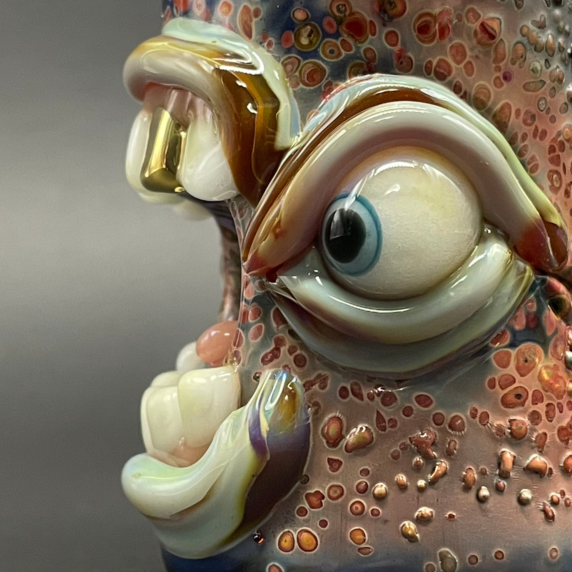 Screaming shot glass with gold enamel tooth and glow in the dark eye