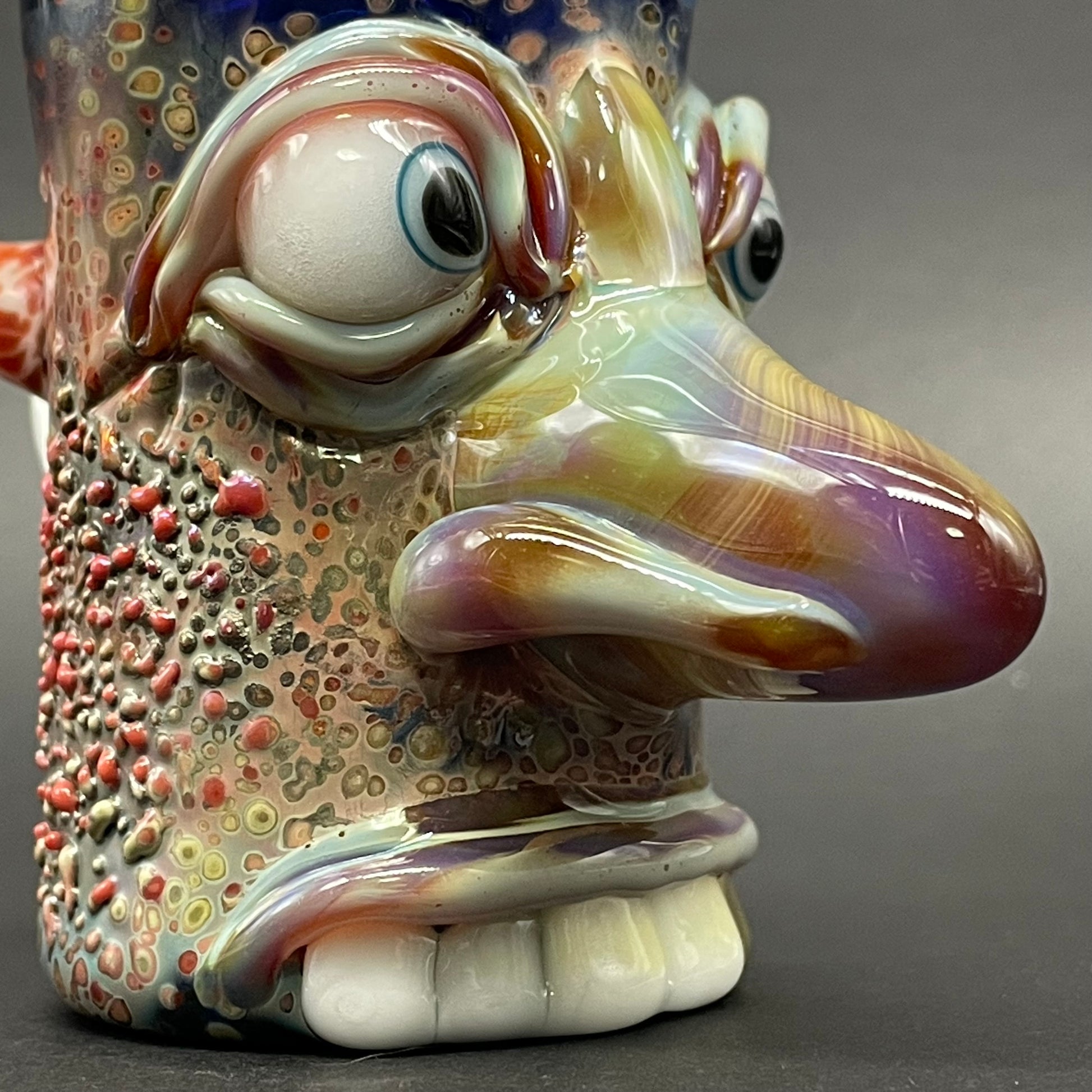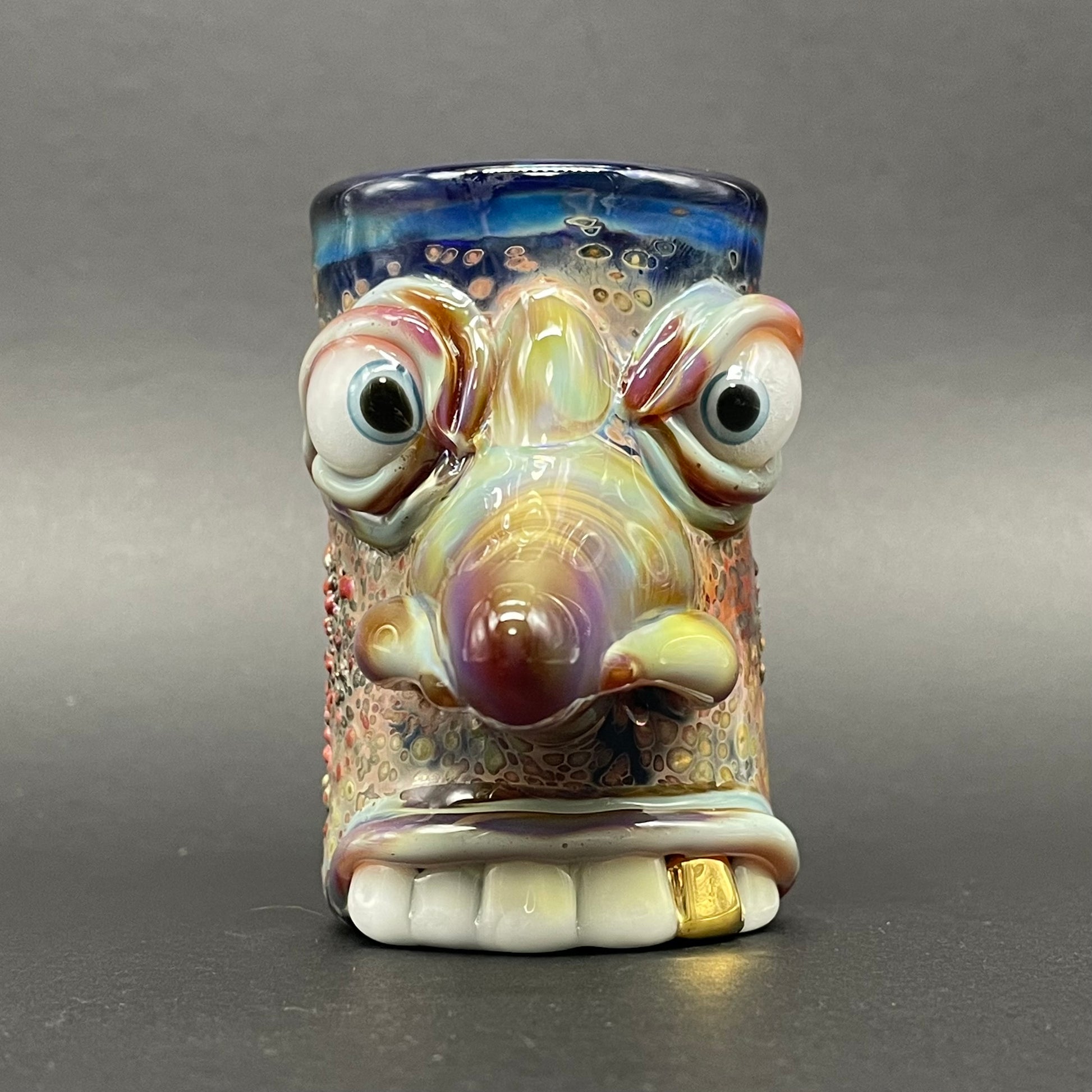 Shnoz shot glass With a big ole nose glow in the dark eyes and gold enamel tooth.