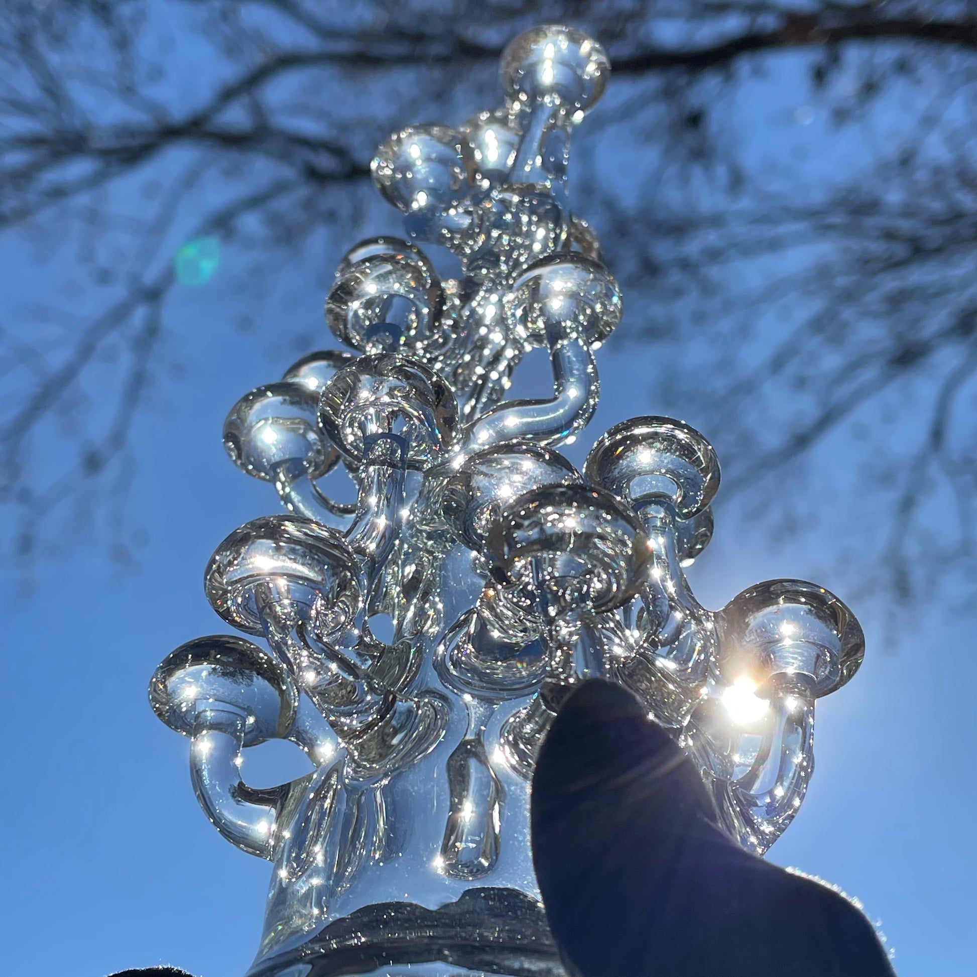 TALL CLEAR GLASS MUSHROOM SCULPTURE