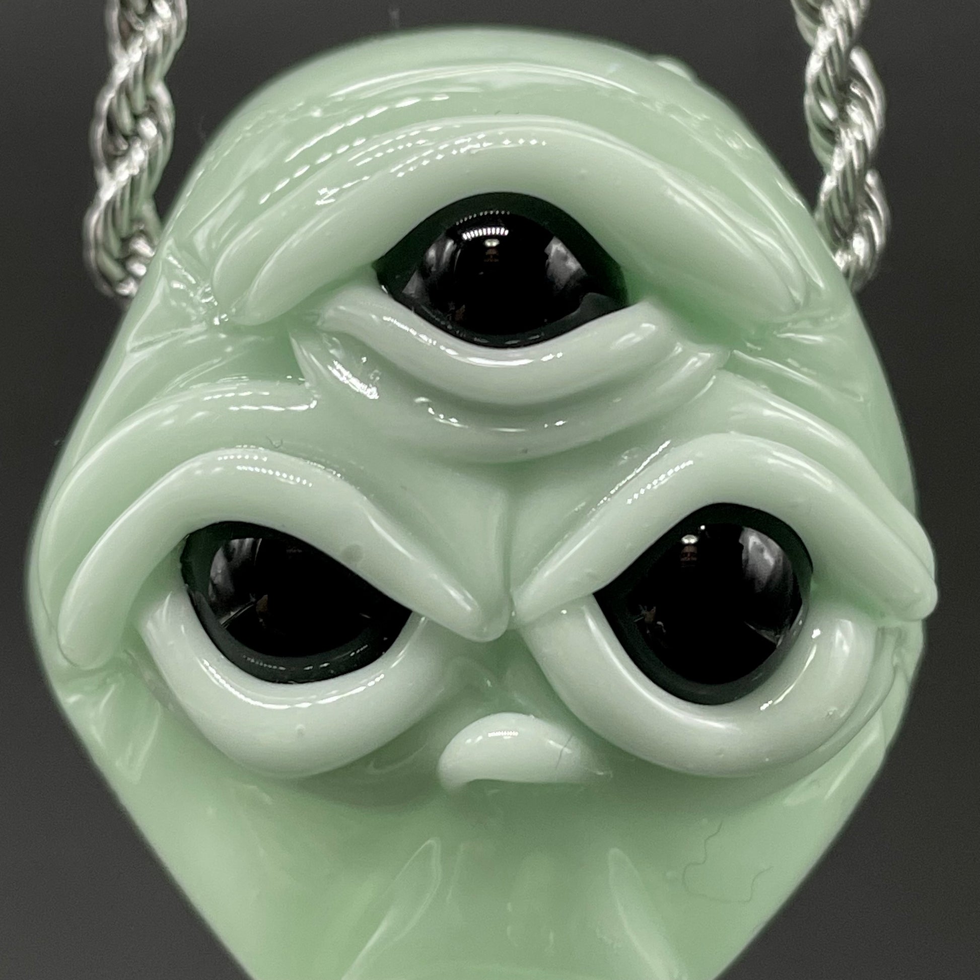 Time manipulating three eye glass alien pendant