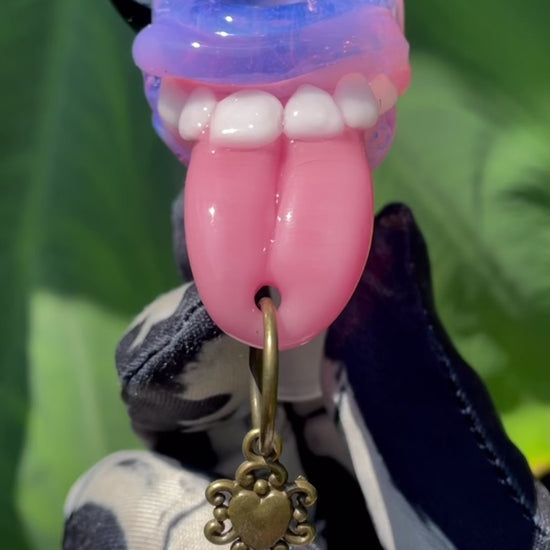 18mm 4 hole pink slime Pierced tongue slide With key charm.